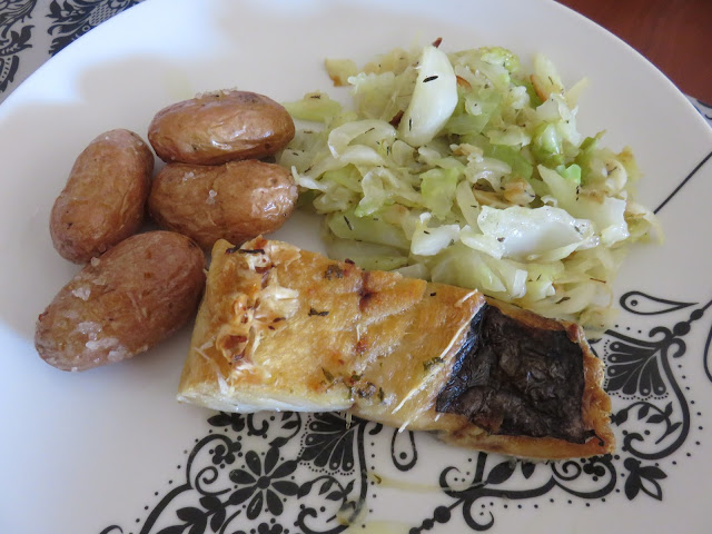 Bacalhau Assado No Forno Com Batata à Murro e Couve Branca Salteada!